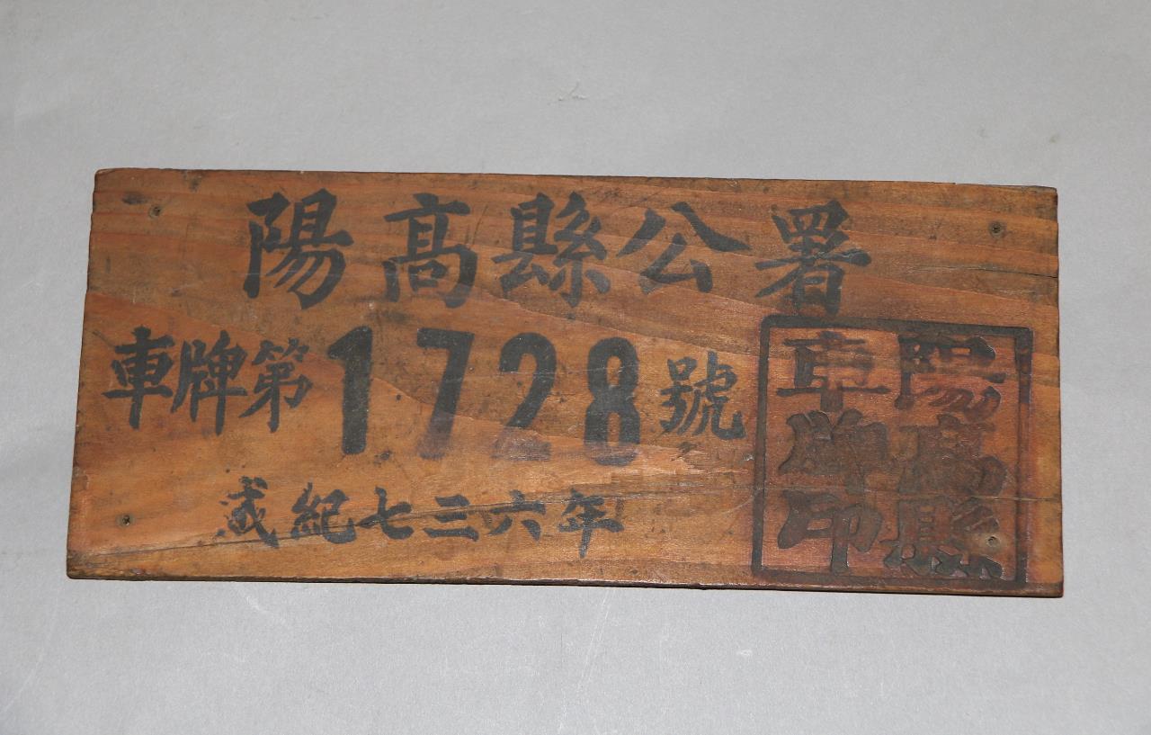 1941年山西阳高县公署木制车牌(第1728号)