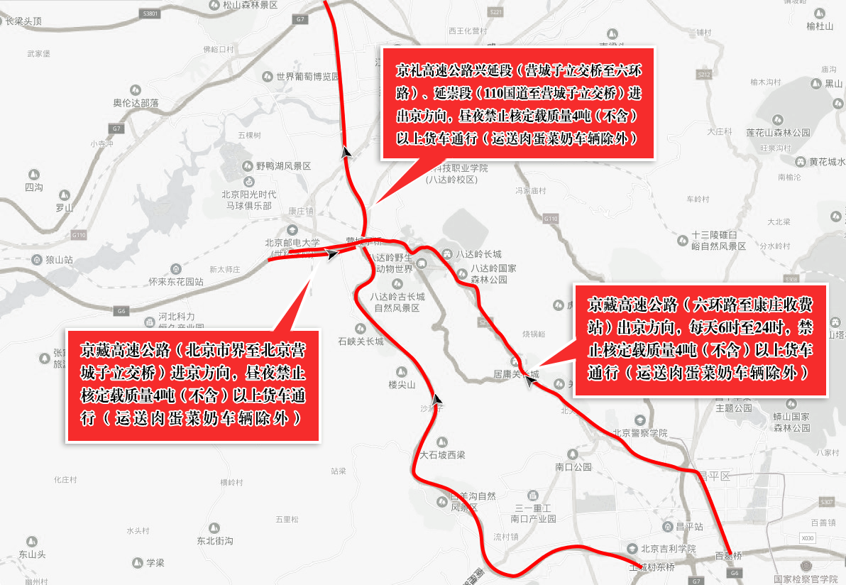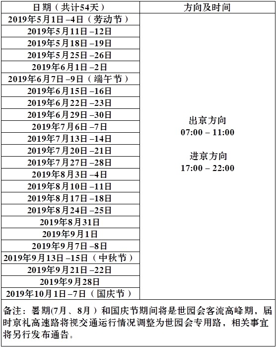 需要特别提示的是,2019年中国北京世界园艺博览会将于4月29日至10月7日在延庆区举行。世园会期间,对京礼高速、京藏高速部分路段载货汽车采取交通管理措施。