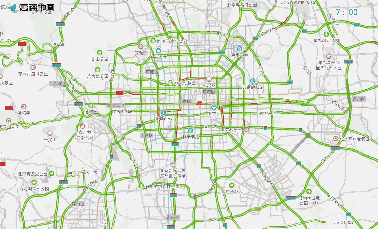 建议早晚高峰出行前及时关注交管部门发布的实时路况,尽量乘坐地铁等公共交通出行,驾车通勤可适当提早出发。上述部分道路车流量大可适时选择北土城路、京承高速、机场二高速、东四环、西大望路、朝阳北路、朝阳路、通惠河北路、广渠路、京哈高速、两广路、广安门外大街、丽泽路等道路行驶。