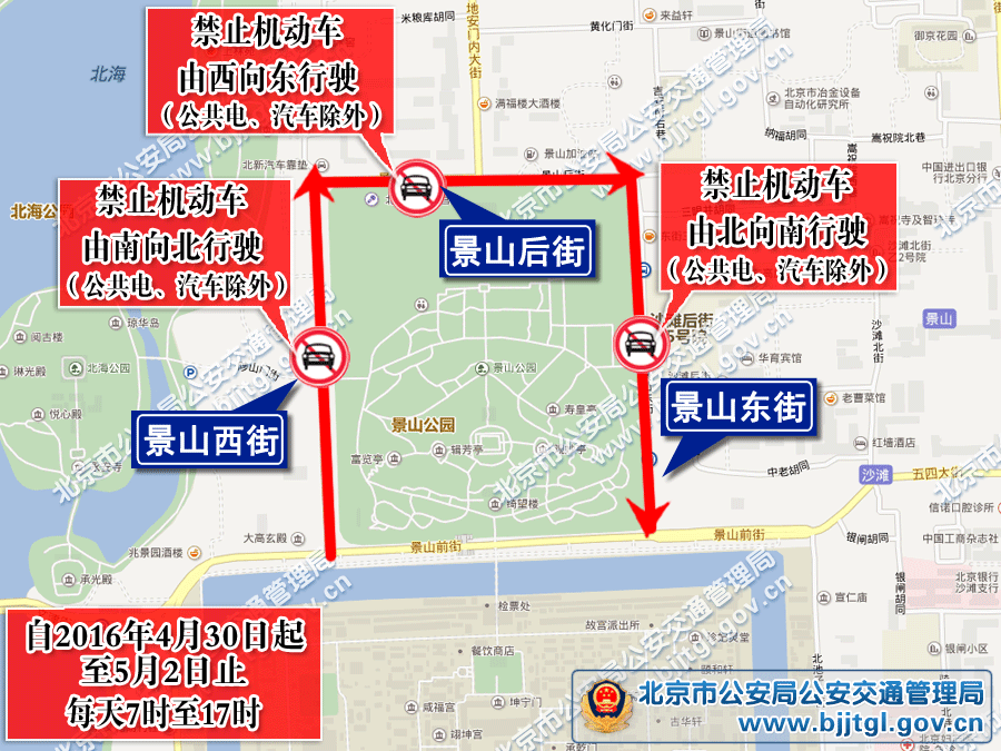 2.景山后街禁止机动车由西向东行驶;