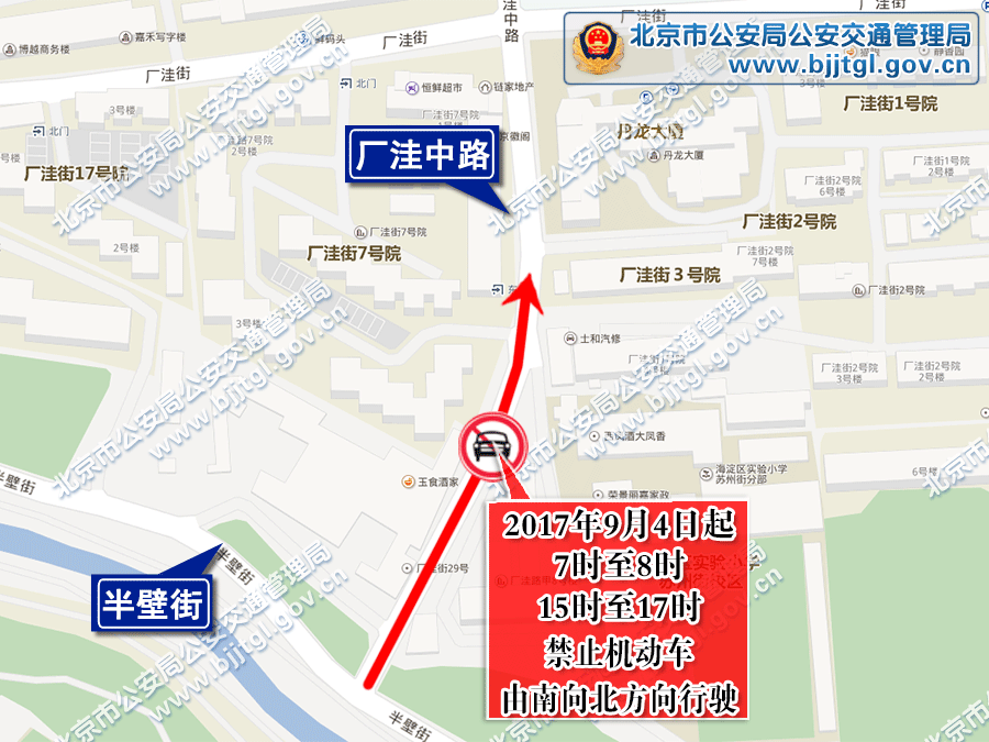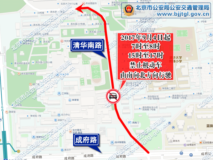 为保证海淀区厂洼中路、清华南路道路的交通安全与畅通,根据《中华人民共和国道路交通安全法》的有关规定,决定自2017年9月4日起: